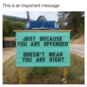kids...) to understand that using the "I am offended" phrase is a crutch to avoid views/discussions that are different